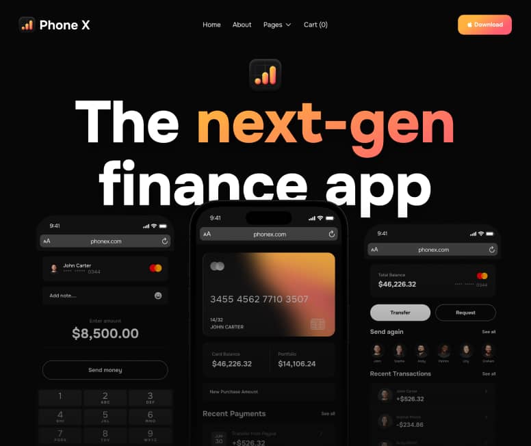 Phone X Webflow Template includes over 20 pages in total, with more than 42 sections, and 3 different Home, Blog, and Contact pages.